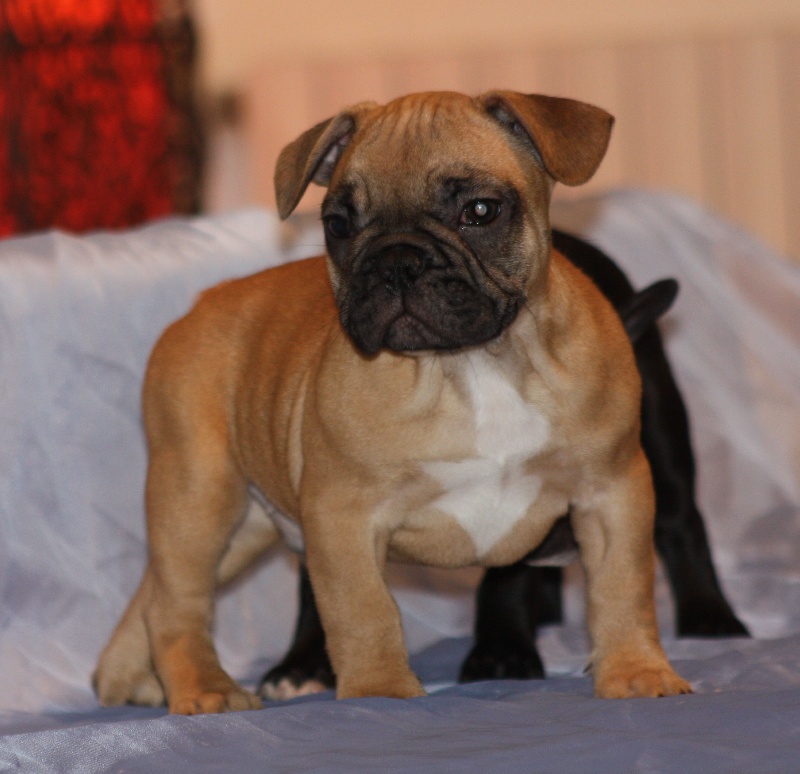 Magnifique mâle fauve avec plastron, porteur de la panachure. Excellent type en tête, beau masque noir, corps court, belles côtes en tonneau, belle queue légèrement en virgule. Les 2 testicules sont en place. Pour expo et/ou compagnie.